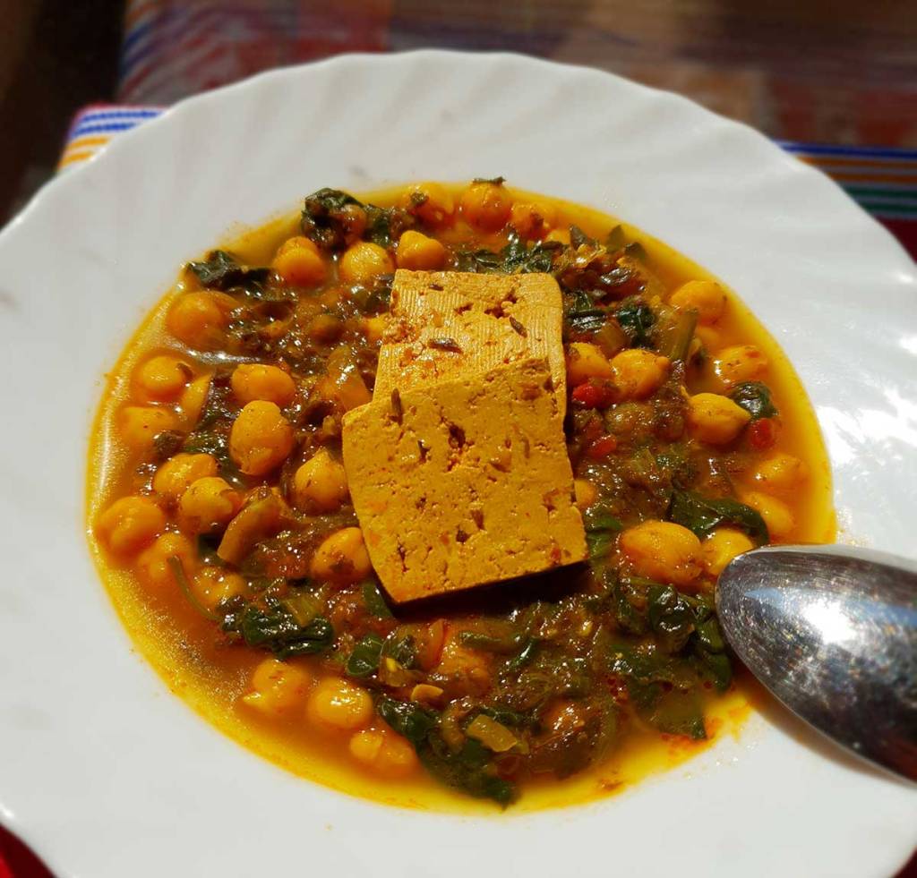 Es Viernes Santo y toca ¡potaje! Es un plato muy típico de Semana Santa en España y tradicionalmente se elabora con garbanzos, espinacas y bacalao. Yo lo he veganizado: sin bacalao, con tofu marinado y algas -espaguetis de mar- para darle un toque ‘marino’.