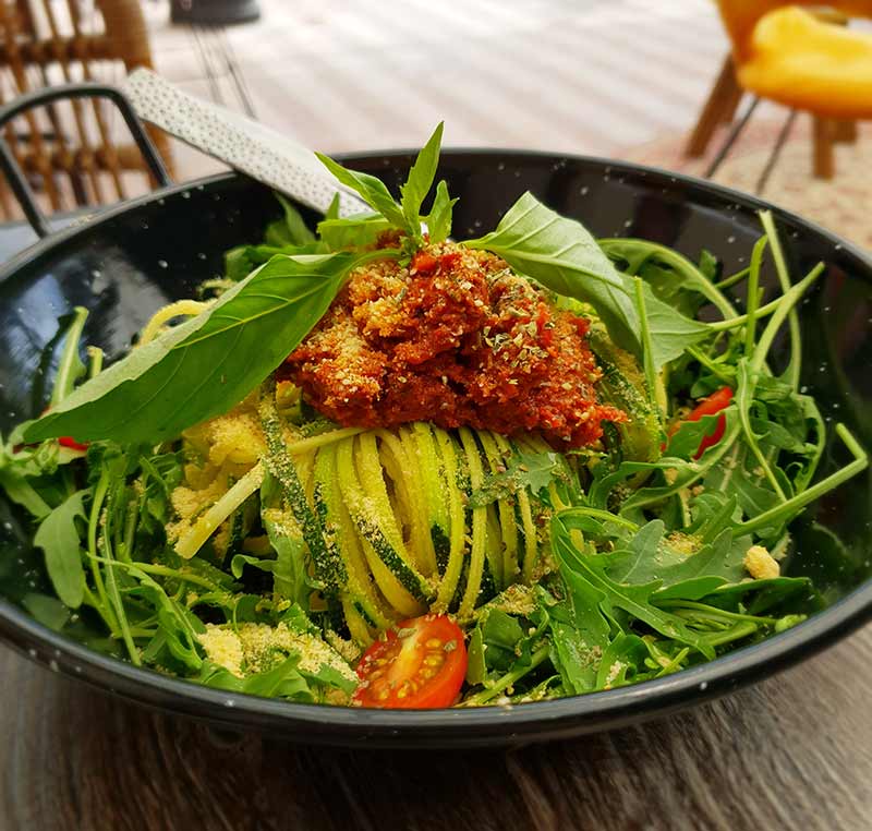 Con un ambiente playero y relajado, Bubita Bar hace una propuesta gastronómica original. “Queremos mostrar que podemos degustar una comida deliciosa sin tener que explotar a ningún animal”, afirma Roberto. La fórmula es la siguiente: tapas de inspiración española en versión vegana -con algún toque italiano-, ensaladas, sangrías y cócteles.
