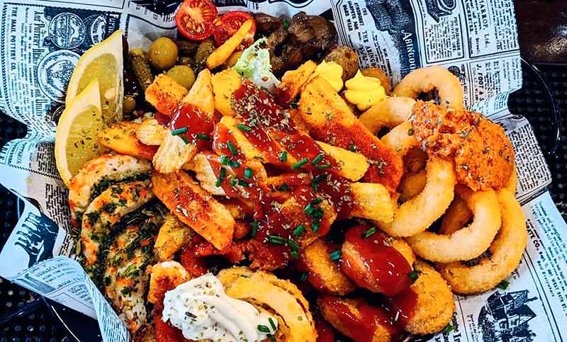 Así, por ejemplo, con el supermix puedes probar patatas bravas, croquetas, nuggets, aros de cebolla marinados, calamares y gambas (elaboradas con tapioca y konjac que aportan un resultado muy logrado). También puedes optar por nachos con guacamame, una revisión del plato que cambia el guacamole por el edamame.